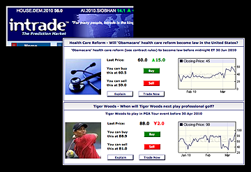 InTrade and the Iowa Electronic Markets are another set of examples. Both turn the act of making political predictions into a simple stock market sort of game. By giving a price to actual outcomes — “Candidate X will in the race!” — players can make actual money by beating the conventional wisdom. And what’s amazing, here, is that these two games have turned into remarkably accurate predictors. Both InTrade and the Iowa Electronic Markets have taken some basic activity — political predictioneering — and added some well-thought game mechanics — a stock market system — and they’ve made something much more interesting and meaningful and accurate.