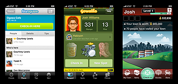 I want to quickly take a look at a three similar location-based check-in apps: FourSquare, Gowalla, and MyTown. Though they’re similar at their core, they each apply game design in a unique way.