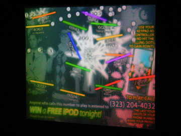 It’s actually interesting going through old board games and classic video games — it’s a good way to shake up your mind a bit when it comes to thinking up new ways of having people interact. And the game mechanics of popular old games can be so ingrained into our culture that almost everyone will recognize them pretty quickly. Everyone knows Pac-Mac. Everyone knows how Space Invaders works. Games I build for my PhonePlay phone-to-screen platform, for example, are often run in a loop with other advertising. In some cases I need potential players to understand how the game works within about 10 or 15 seconds. To the right is a photo of a PhonePlay game that works like Pong or Arkanoid, for example. Balls rain from the sky and you hit them with a paddle to get points. Everyone understands this pretty quickly. (It’s hard to tell, but this is actually projected about 12 feet tall in front of a few thousand people at a concert venue.) Anyway: Mining game mechanics from old board games and coin-op arcade games — or popular sports, for that matter — can be a great way to help users quickly understand the game. So I would suggest this approach for social media services, as well, in which you may have only a few seconds to educate a new user about how your thing works before they flit off somewhere else.