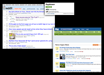 Many sites have imitated this karma system for filtering comments. Reddit and Digg are two of the highest-profile examples — we see their little “Reddit this” and “Digg this” badges all over the place. Both the front pages and the comments sections on these sites are filtered by this score — generally-speaking, the more positive votes something gets, the higher up the list it goes. Like Slashdot, Reddit also visibly displays users’ karma scores.