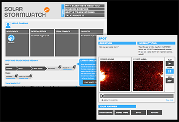 A company called Zooniverse has actually turned both of these activities into games: GalaxyZoo and Solar Stormwatch. GalaxyZoo has players cataloging galaxies. Solar Stormwatch has them watching for solar anomalies which might affect things such as satellites and astronauts. In order to play, a player must first learn the rules — which happens to involve learning about various elements of astronomy like: What does a galaxy look like? And this isn’t just textbook astronomy — this is the real stuff. Functional astronomy. In Solar Stormwatch, players must learn what is an actual solar explosion and what’s just a reflection or a comet or something else. They then earn points and badges by observing this real data and making observations which prove accurate. And players level up: As you earn more points, you open up new sorts of data to process. So. Wrapping game design elements around these takes what might normally be considered tedious data-processing tasks and makes it both fun and educational for the community at large. And, check out this quote from their site: